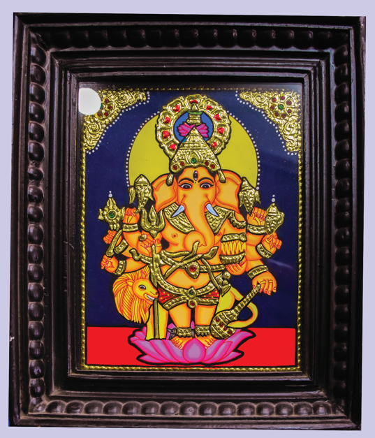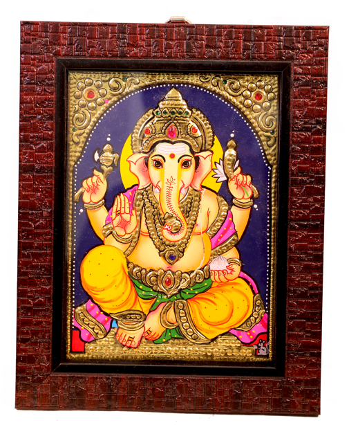 Tanjore painting of Chaturbhuja Ganesha, the supreme deity of prosperity, ...