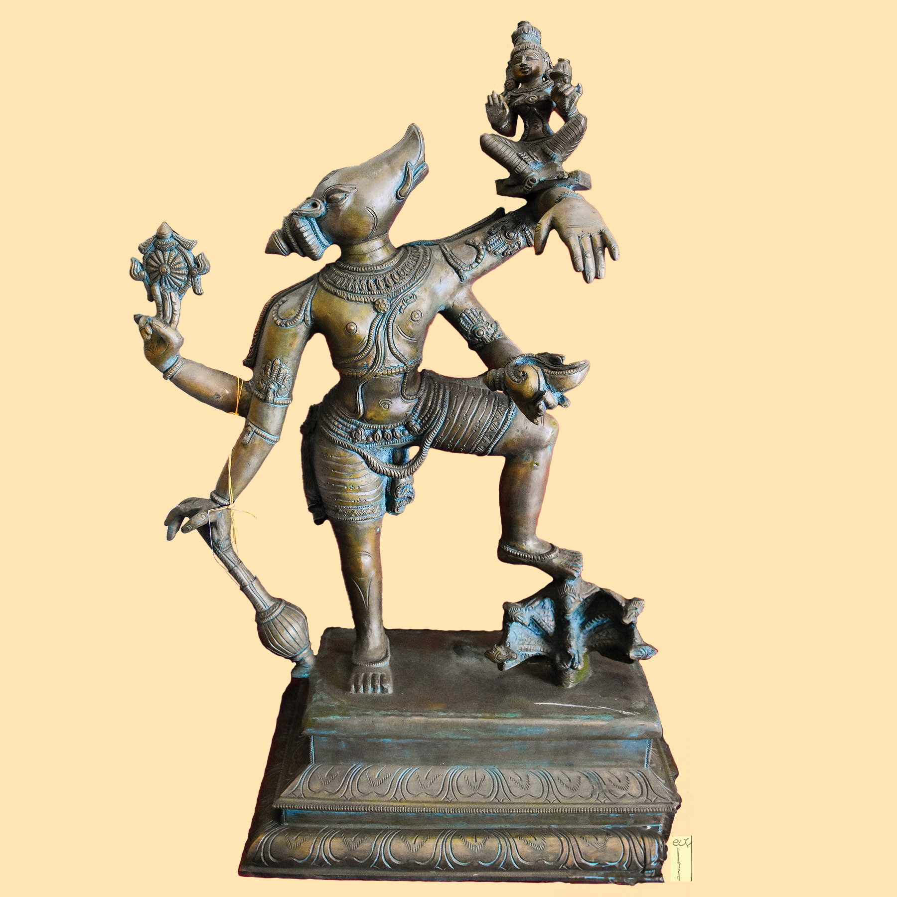rescuing Earth from the demon Hiranyaksha. The statue features Varaha with a majestic coronet, a distinctive face, and four
