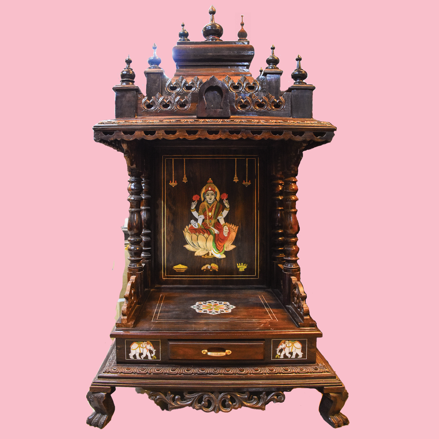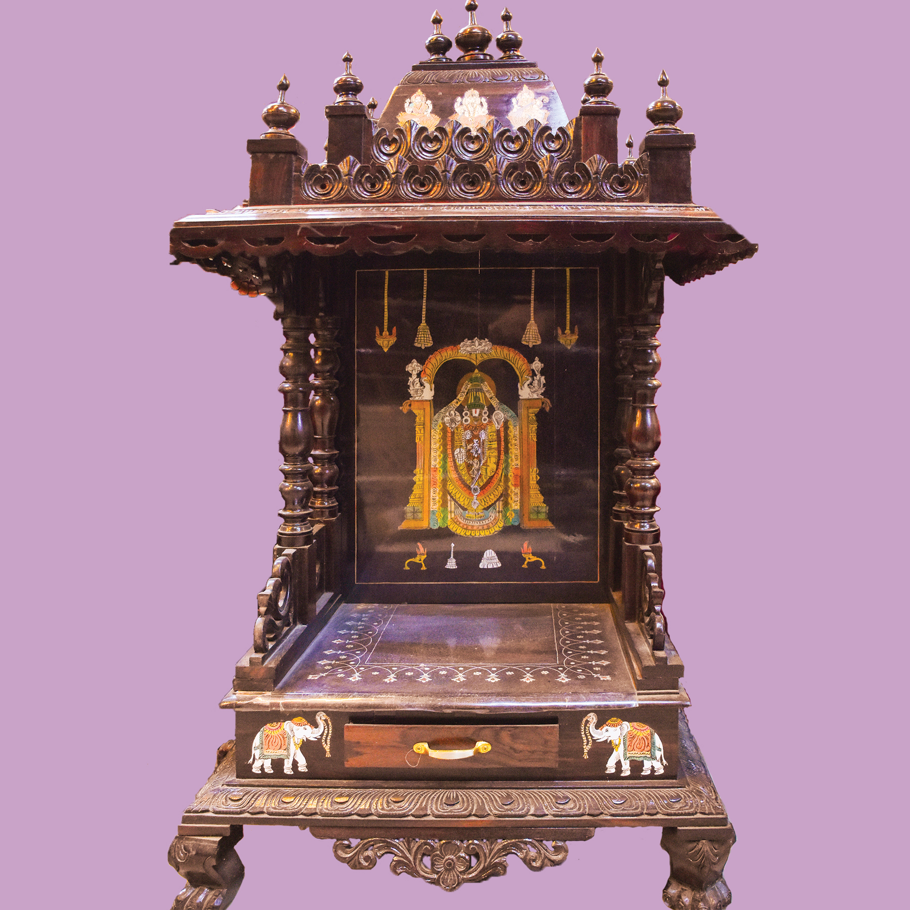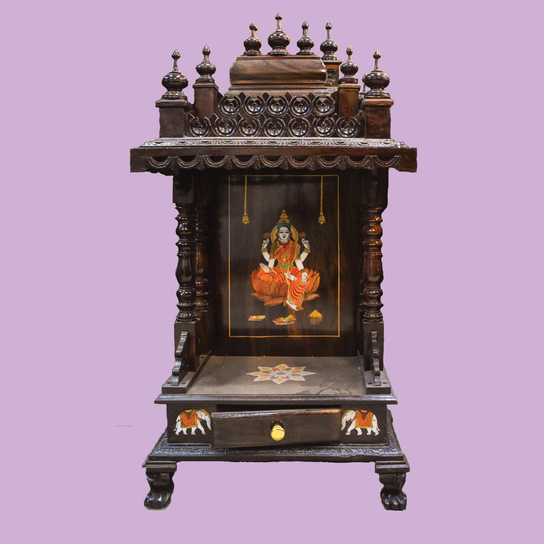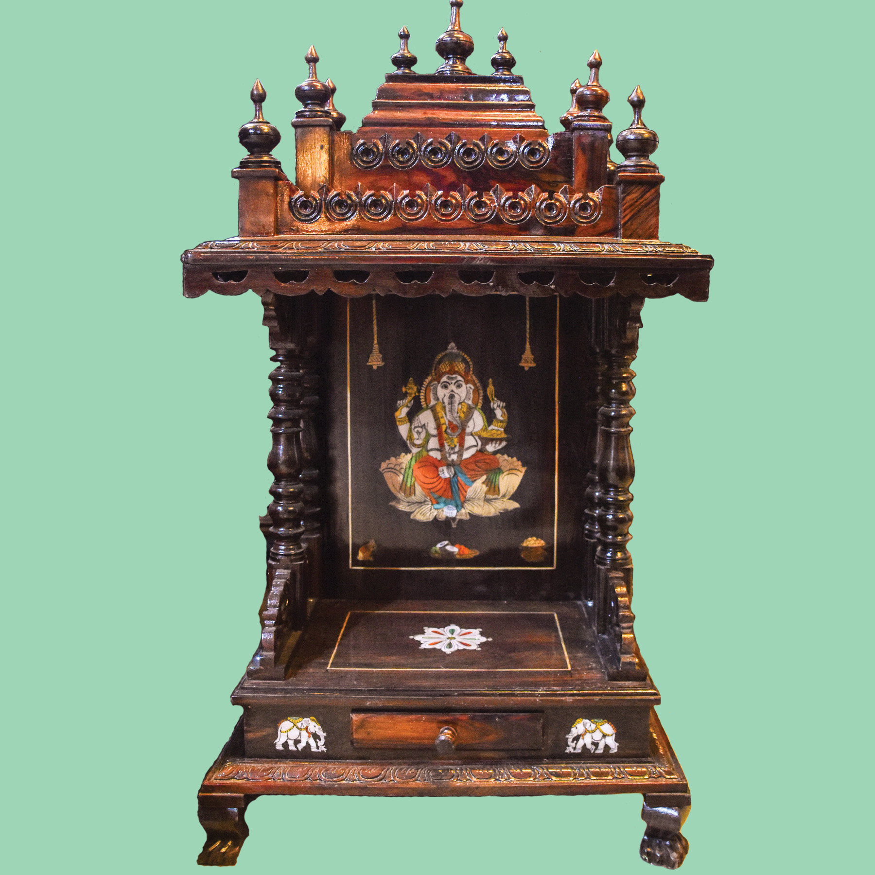 A pooja mandir, or puja cabinet, is celebrated for its ability to infuse a home with spiritual and positive energy. Our rosewood pooja mandir exemplifies exceptional quality and durability. Crafted from high-grade rosewood, known for its strength and stability, this mandir ensures a robust and enduring structure. Each piece is meticulously customized to meet individual preferences, guaranteeing both functional and aesthetic perfection. The natural richness and warmth of rosewood enhance its elegance, creating a serene and uplifting atmosphere in your sacred space, making it the perfect centerpiece for worship and reflection.