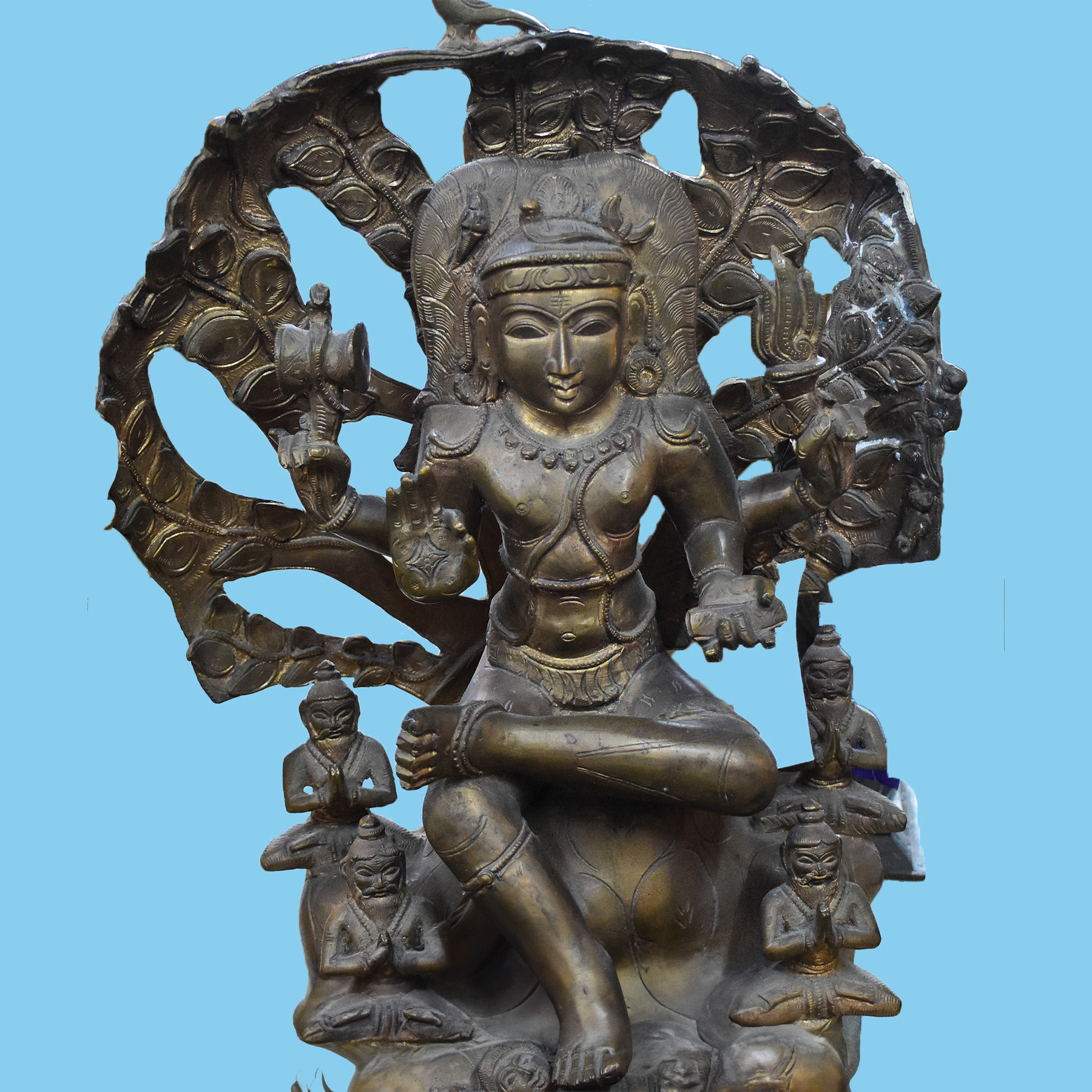 Exquisite bronze Dakshinamurthy Shiva statue, embodying divine knowledge and spiritual ...