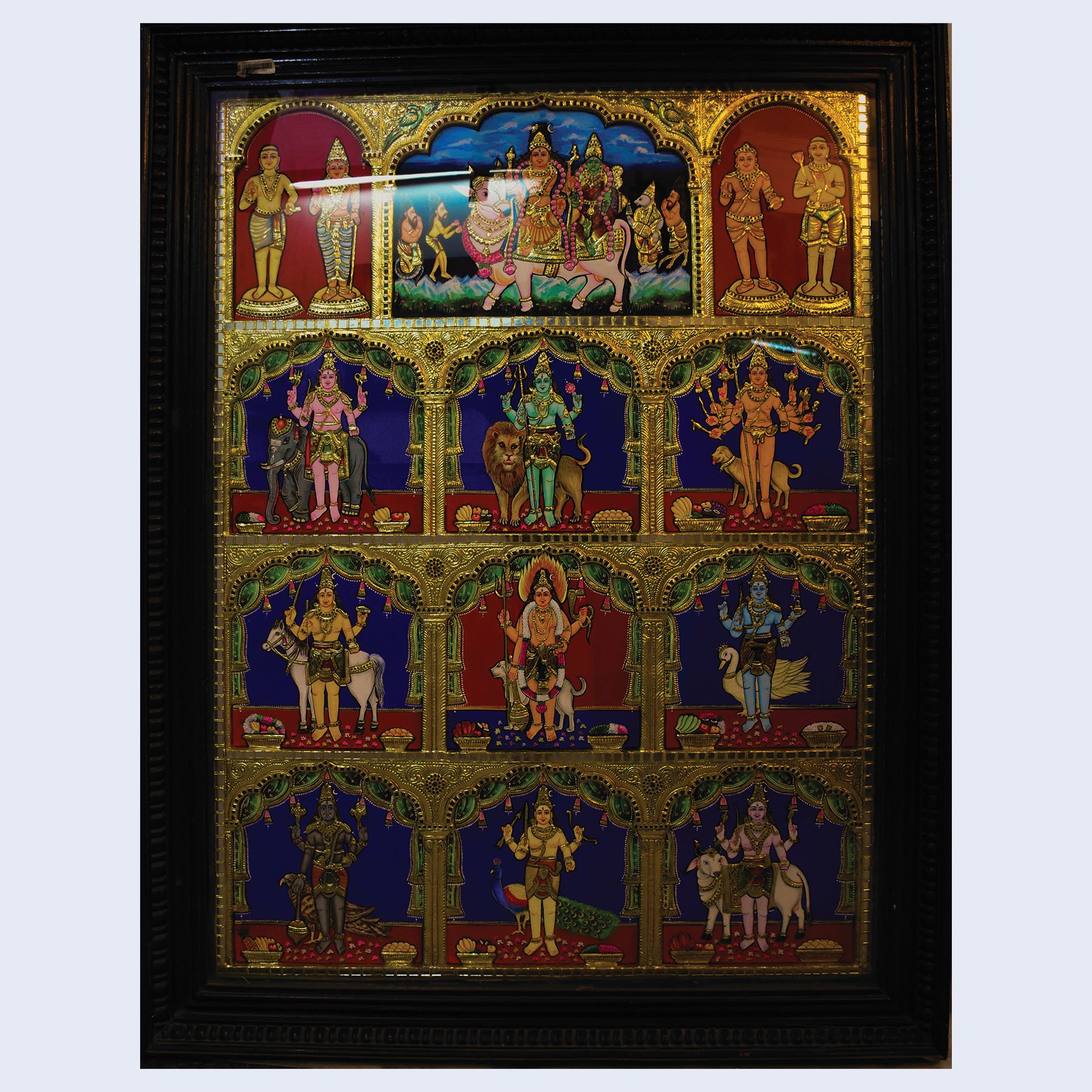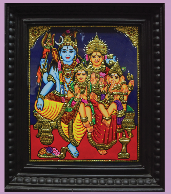 Tanjore painting of the Shivaparivar, depicting Lord Shiva, Devi Parvati, ...