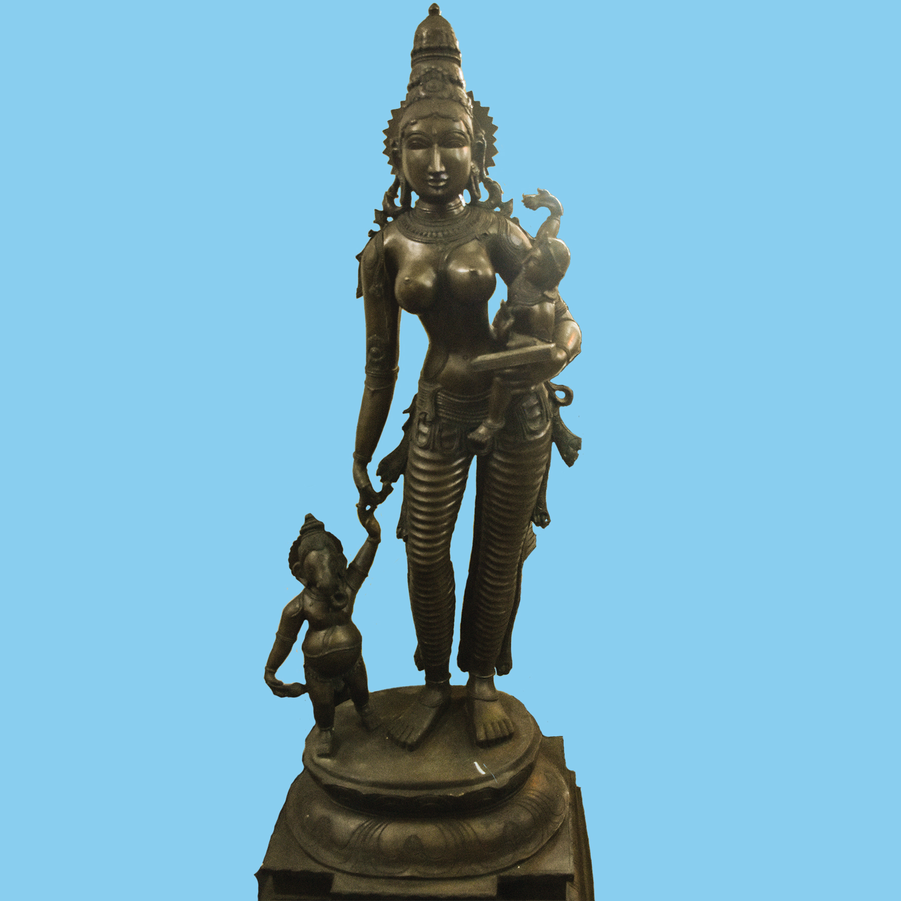 Bronze sculpture of Parvati in maternal bliss with Skanda and ...