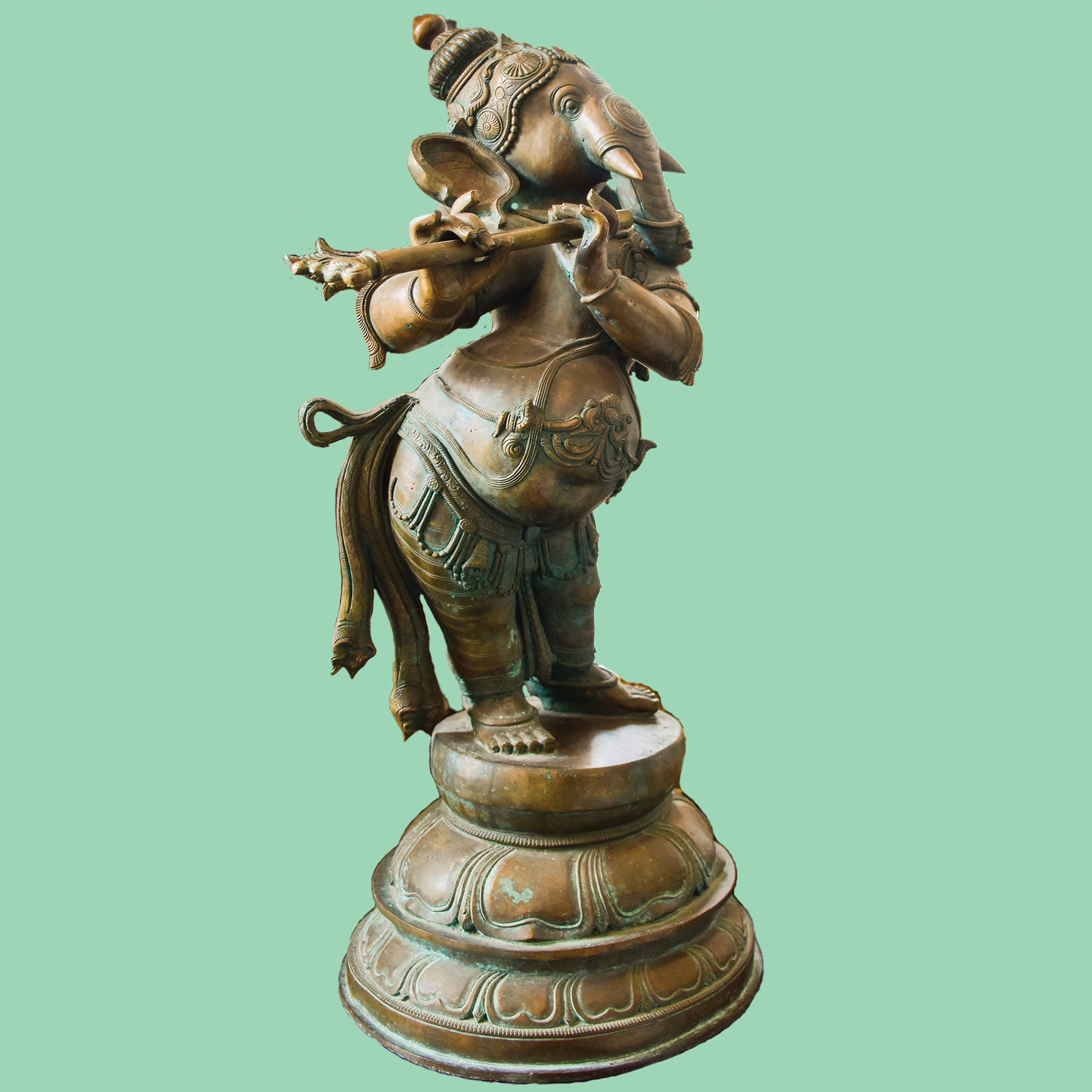This bronze statue of Bhagwan Ganesha stands on a lotus ...