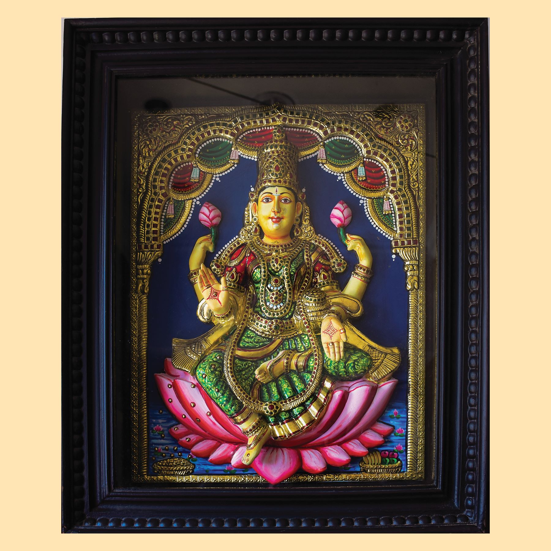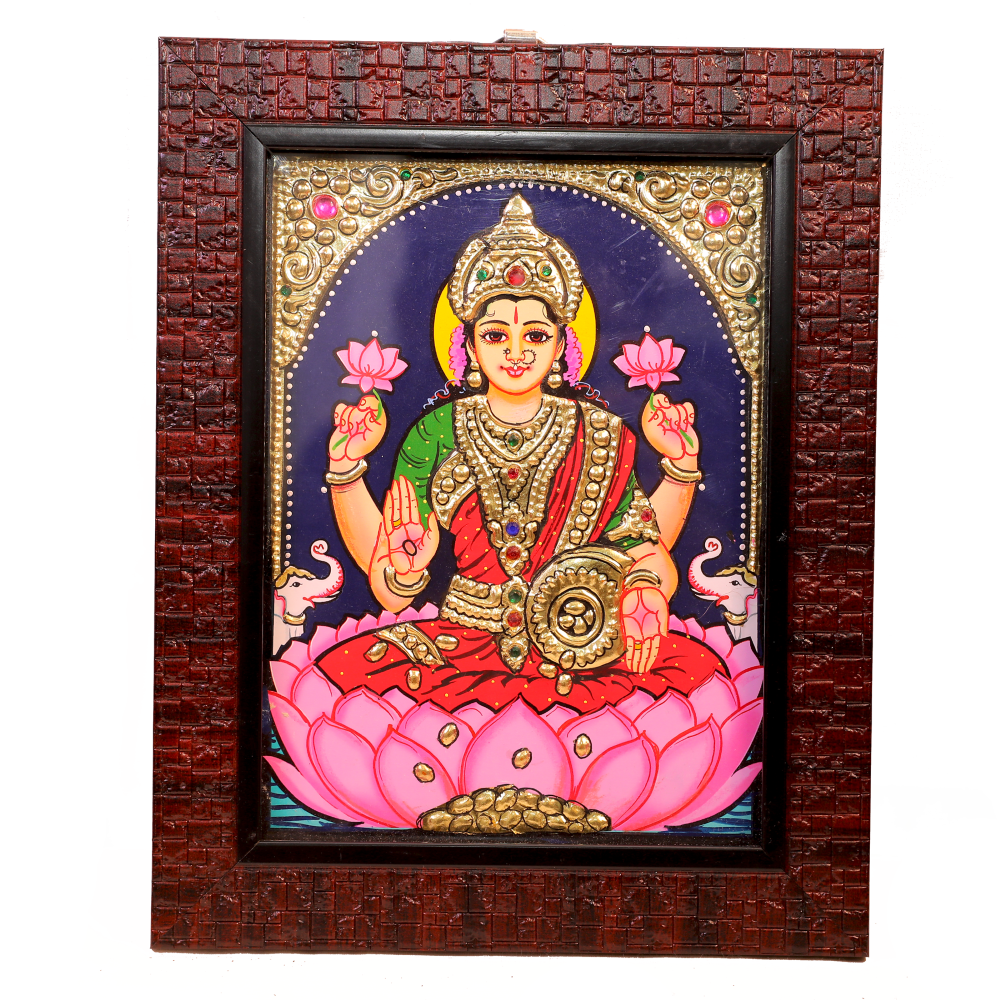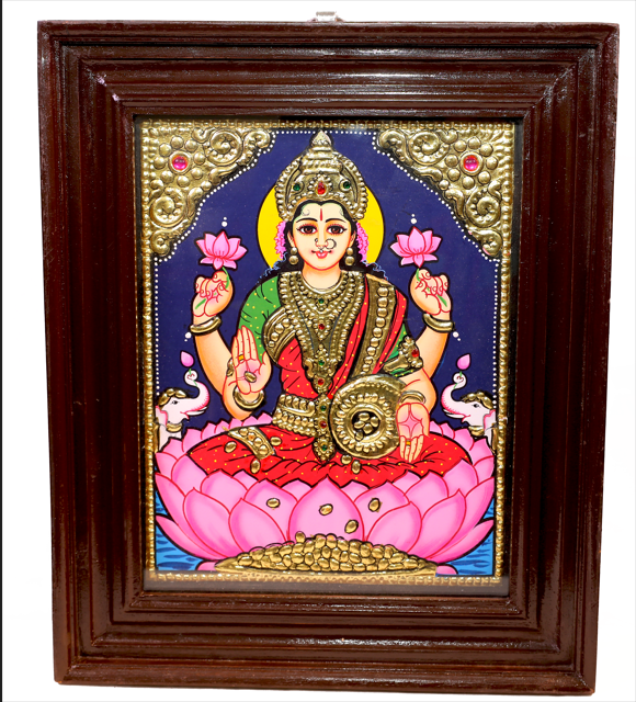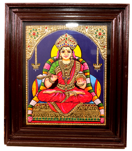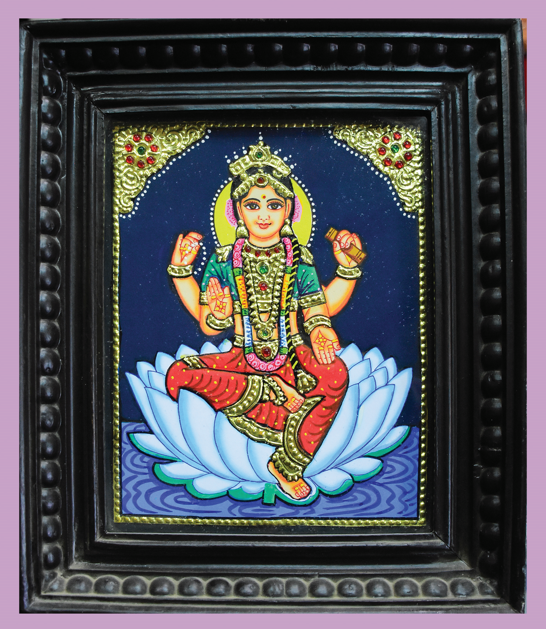 Tanjore painting of Goddess Lakshmi, elegantly holding a pot of ...