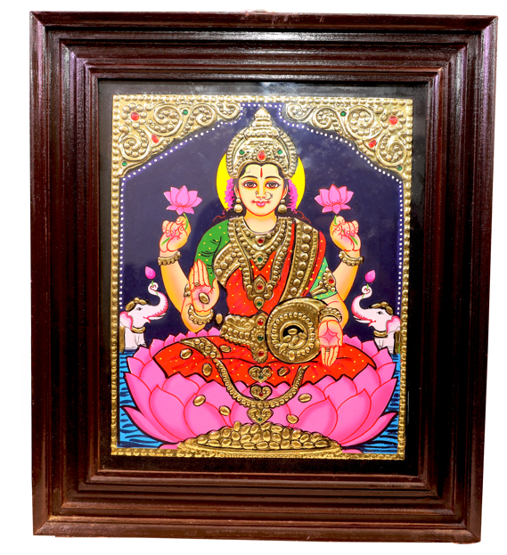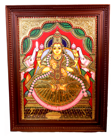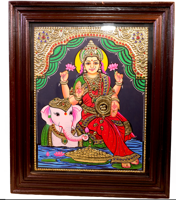 Tanjore painting of Goddess Gajalakshmi, radiating opulence on a lotus ...