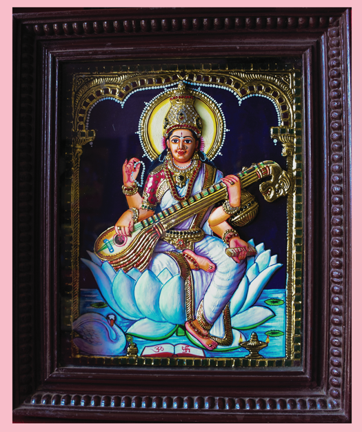 This Tanjore painting of Goddess Saraswati radiates divine wisdom and ...