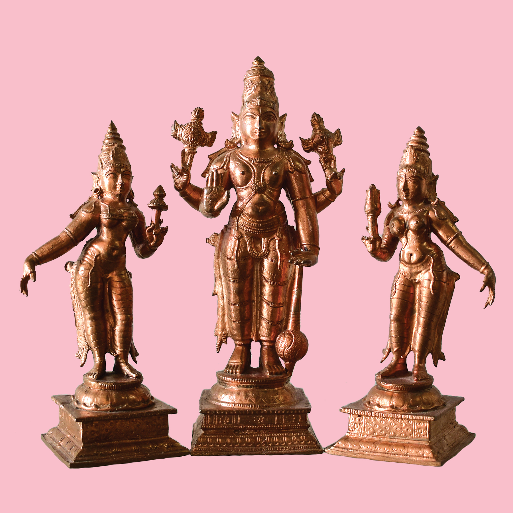 This copper-mixed bronze statue depicts Maha Vishnu with Sri ...
